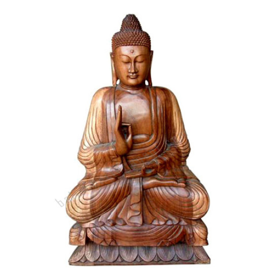 Wooden Natural Brown Seated Buddha On Lotus