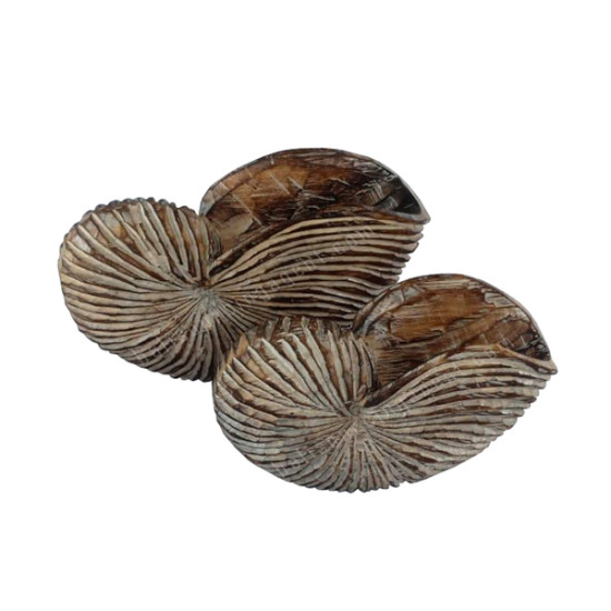 Wooden Decorative Nautical Shell White Wash Set Of 2