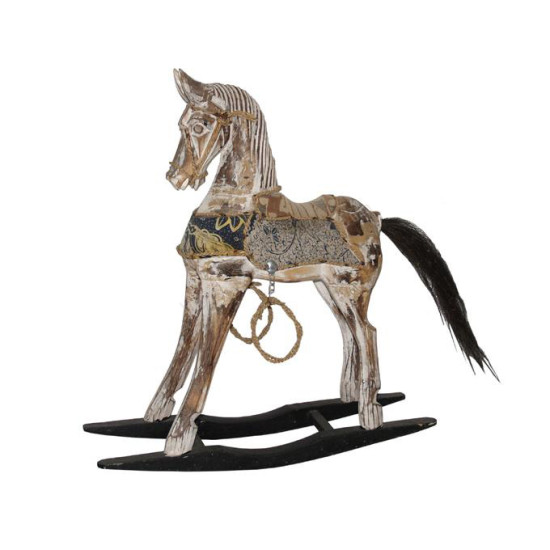 Wood Rocking Horse White Wash Batik 50 cm