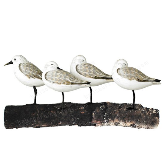 Wood Sanderling Birds On Wood Block 41 cm