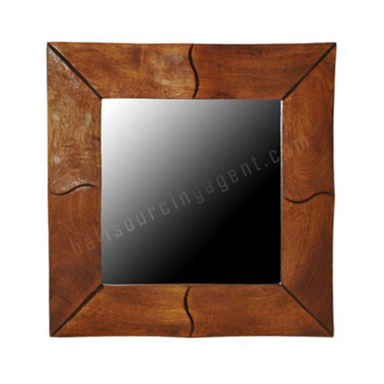 Wooden Square Mirror Bamboo Motif Tea Brown