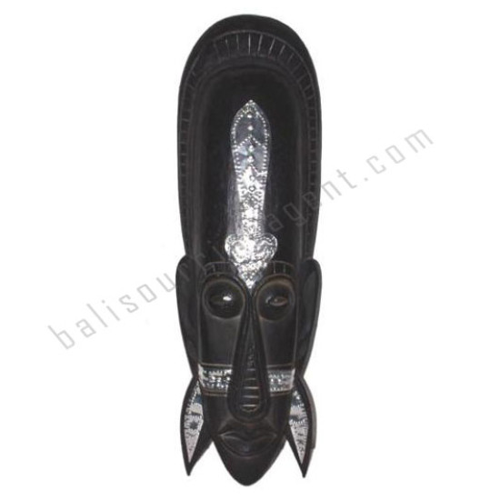 Wood Tribal Mask Black Silver 50 cm