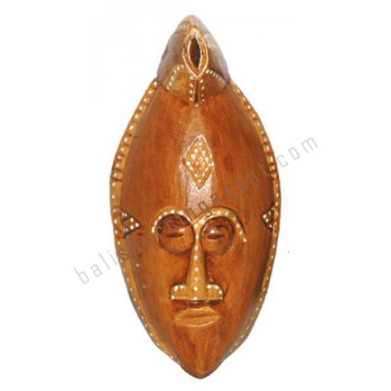 Wooden Tribal Mask Brown White Dots