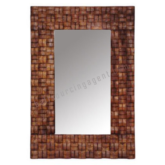 Wooden Woven Rectangle Mirror Tea Brown