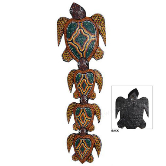 Wood Yellow Green Turtles Wall Relief 38 cm
