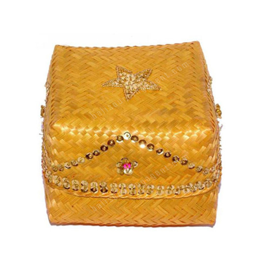 Woven Bamboo Box Yellow With Beads